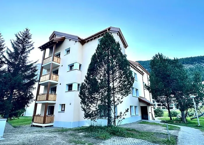 Chic Alpine Elegance: Designer Retreat In Samedan公寓距离卢加诺180公里,步行10即可到Samedan, Quadratscha公交车站. 在所有房间里,您可以找到露台,欣赏花园景致.